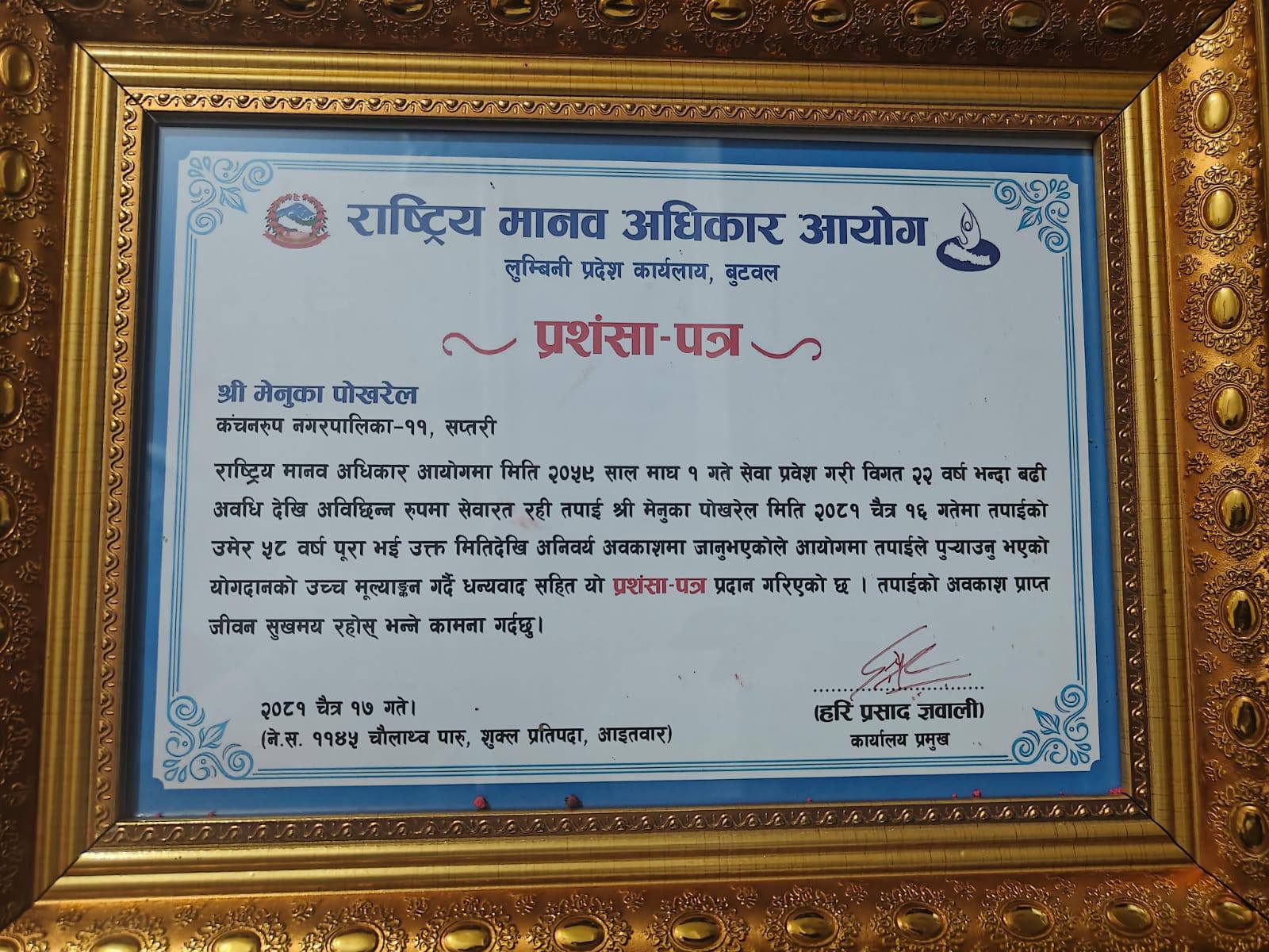 Information Technology Assistant Mr. Arjun Khanal welcomed at National Human Rights Commission, Lumbini Province Office |